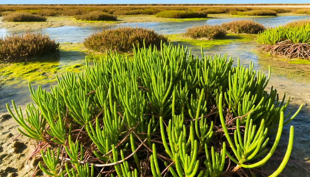 A salicórnia, muitas vezes referida pelo seu nome científico Salicornia ramosissima, é uma planta com características únicas. Sendo uma planta halófita, ela se desenvolve naturalmente em ambientes de alta salinidade, como estuários e marismas, onde outras plantas comumente não sobreviveriam.