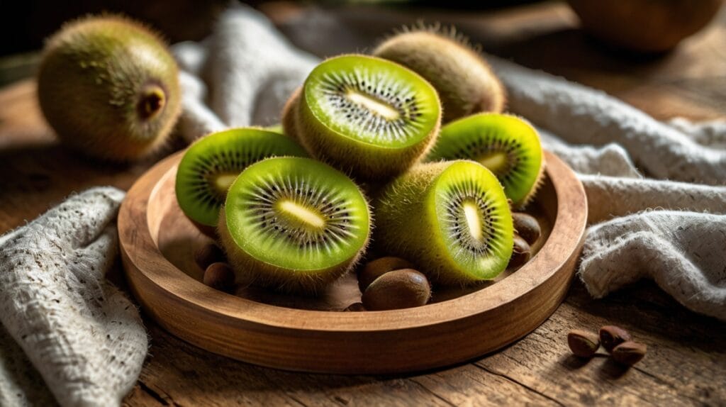- Estudos sugerem que o kiwi pode ajudar a melhorar o sono devido à presença de antioxidantes e serotonina, um neurotransmissor que regula o ciclo do sono.